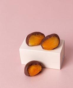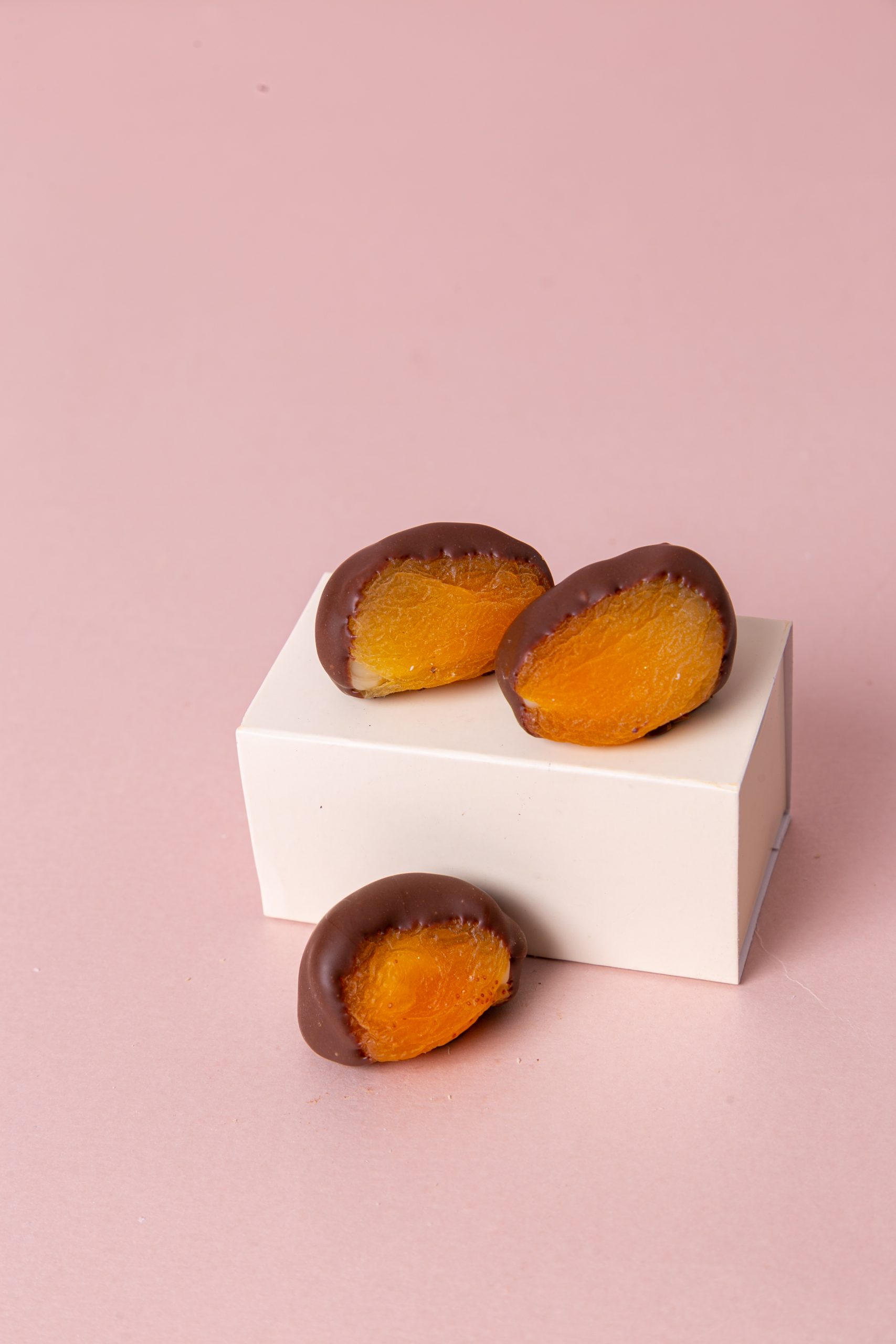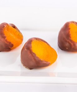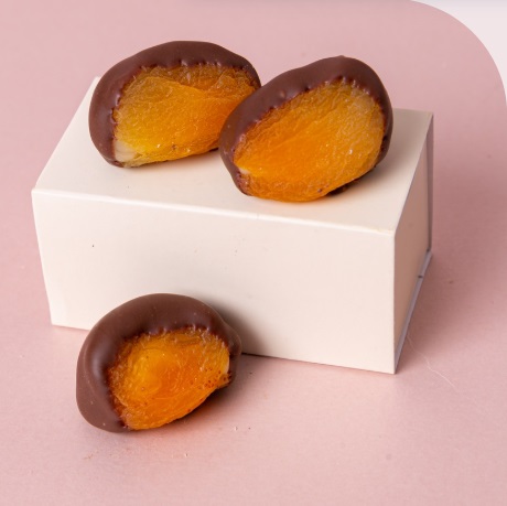 - Damasco Recheado: damasco recheado com creme branco no chocolate ao leite.