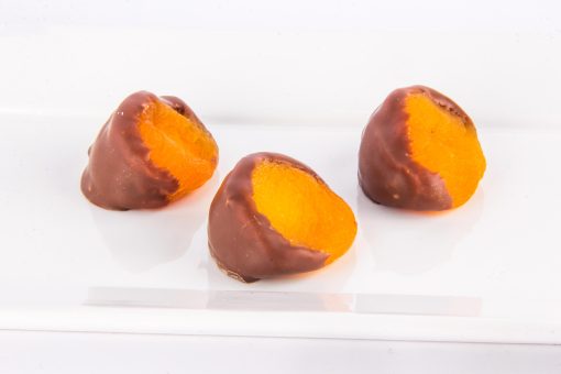 - Damasco Recheado: damasco recheado com creme branco no chocolate ao leite.