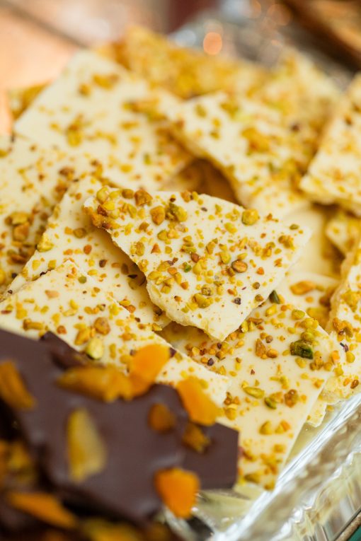• Lascas de chocolate belga branco e pistache – 1 unidade corresponde 1 Kg