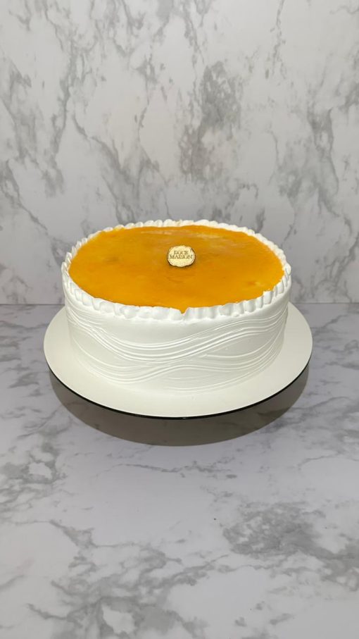 - Massa branca (pão de ló), recheio de creme suíço com damasco.
